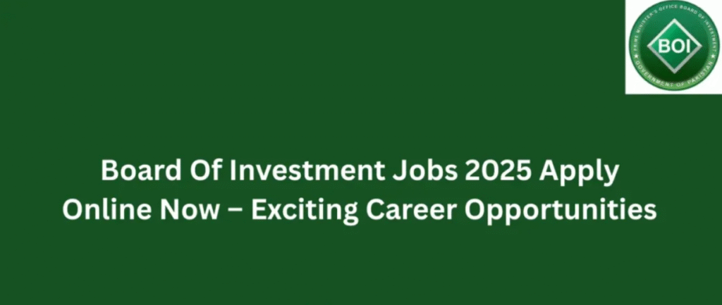 Board Of Investment Jobs 2025 bring exciting opportunities for qualified individuals seeking a government career in Pakistan. The Board of Investment (BOI) is a central agency of the Government of Pakistan responsible for promoting and facilitating both domestic and foreign investments.